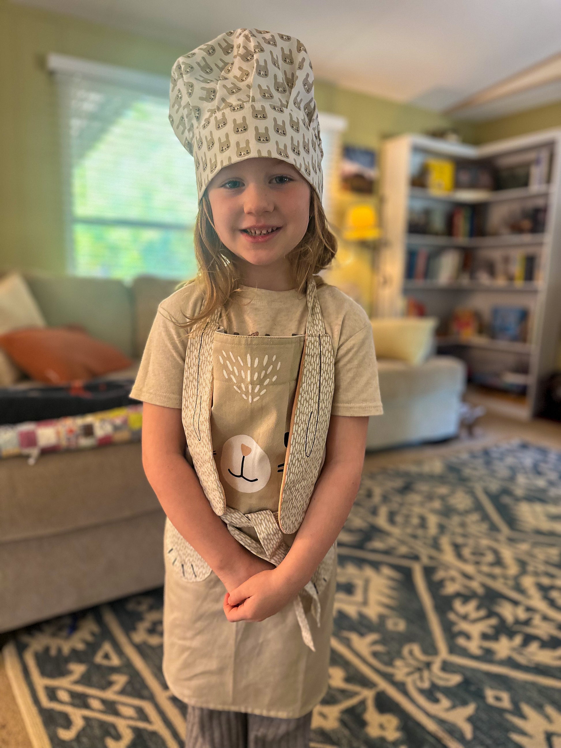 kids will love this adorable apron and chef hat set from Jubilee by Danica. An adjustable neck and waist ties on the apronada functionality, while a matching hat with a velcro adjustable sizing adds whimsy and flair. Suitable for kids aged 3-8.