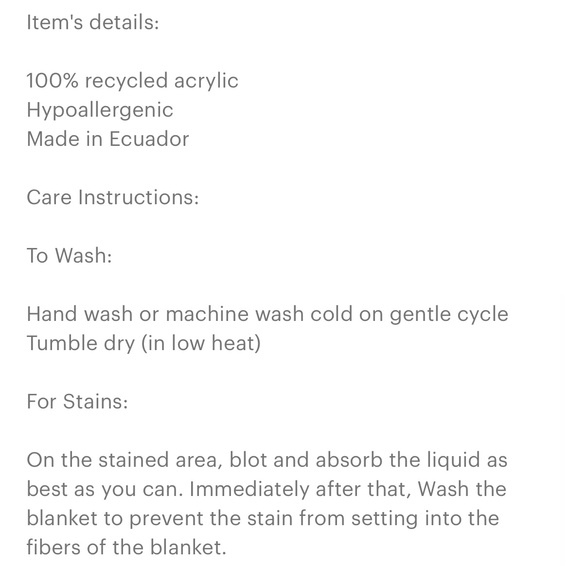 tem's details: • 100% recycled acrylic